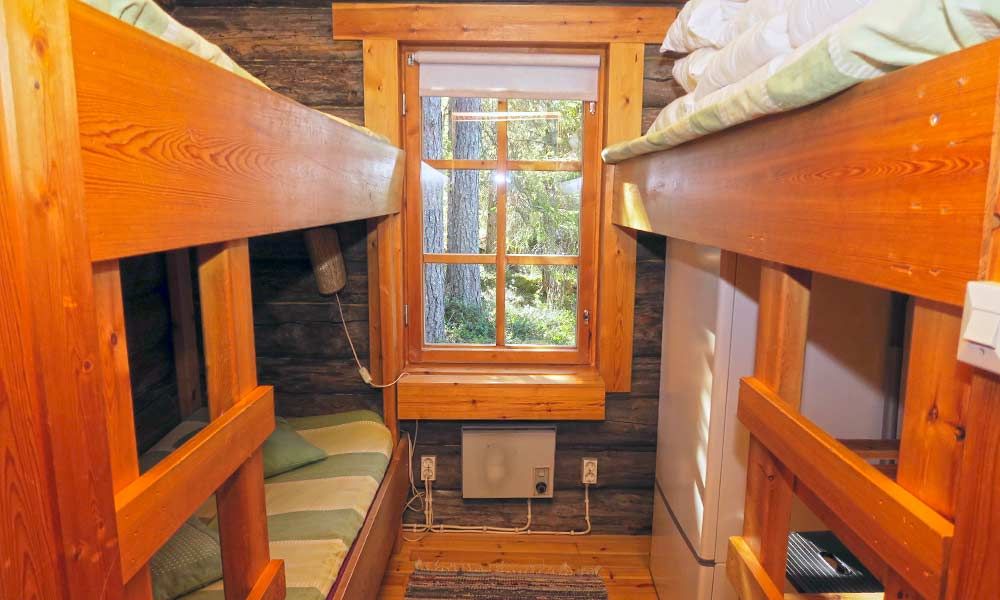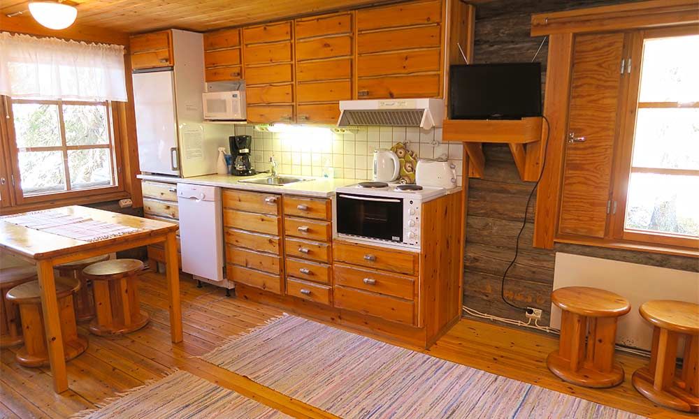 Honkapirtti is a log cabin built in 1985. The cabin has two sleeping alcoves. Both alcoves contain 130-140 cm wide double beds. The cabin has open-plan kitchen-living room and a sauna with electric stove.