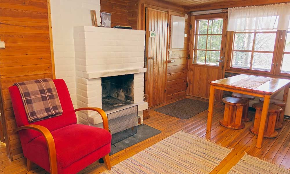 Kelopirtti is a log cabin built in1987. There are beds for 2 adults and 4 children: there is a double bed in the bedroom, a single bed that pulls out into a double in the living room, and a small loft (shallow, steep stairs) with 4 mattresses. The cabin has open-plan kitchen-living room and a sauna with electric stove.