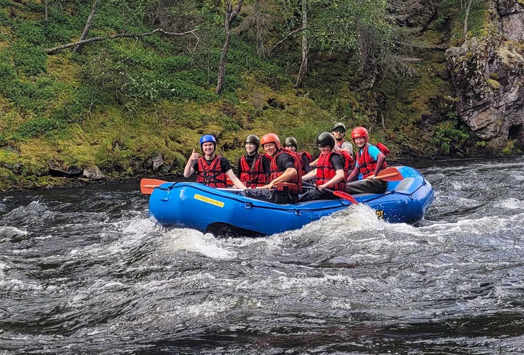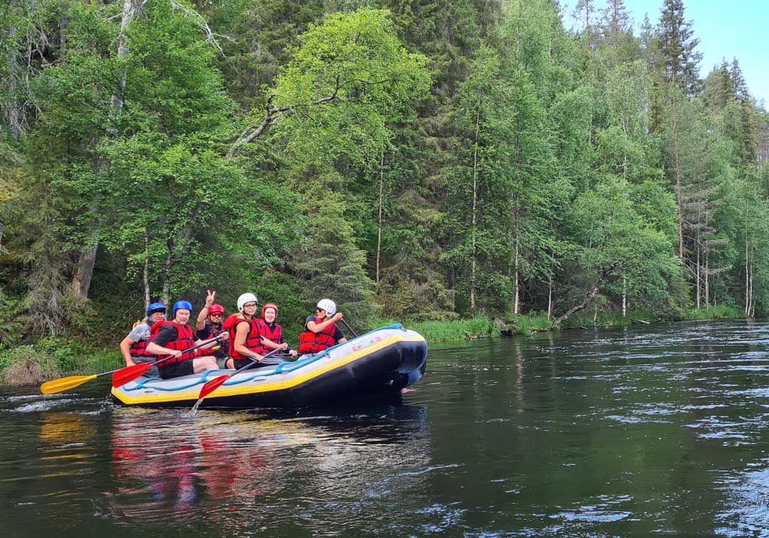 We meet at Käylä to gear up, and then the rafting adventure will begin! We will shoot seven rapids on the Käylä – Juuma route. The first three rapids on the route – Käyläkoski, Vähä-Käylän koski and Vääräkoski – are Class I rapids according to the international rapid rating system. Navigating these calmer rapids is a good way to get a feel for rafting.