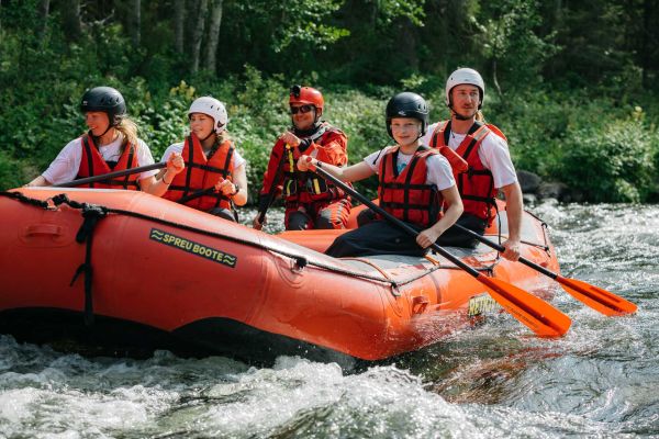 The rafting price includes gear (rubber boots, rain pants and raincoat, PFD, helmet), transport back to the meeting place, a guide who is a trained rafting skipper, a rubber raft with paddles, insurances.