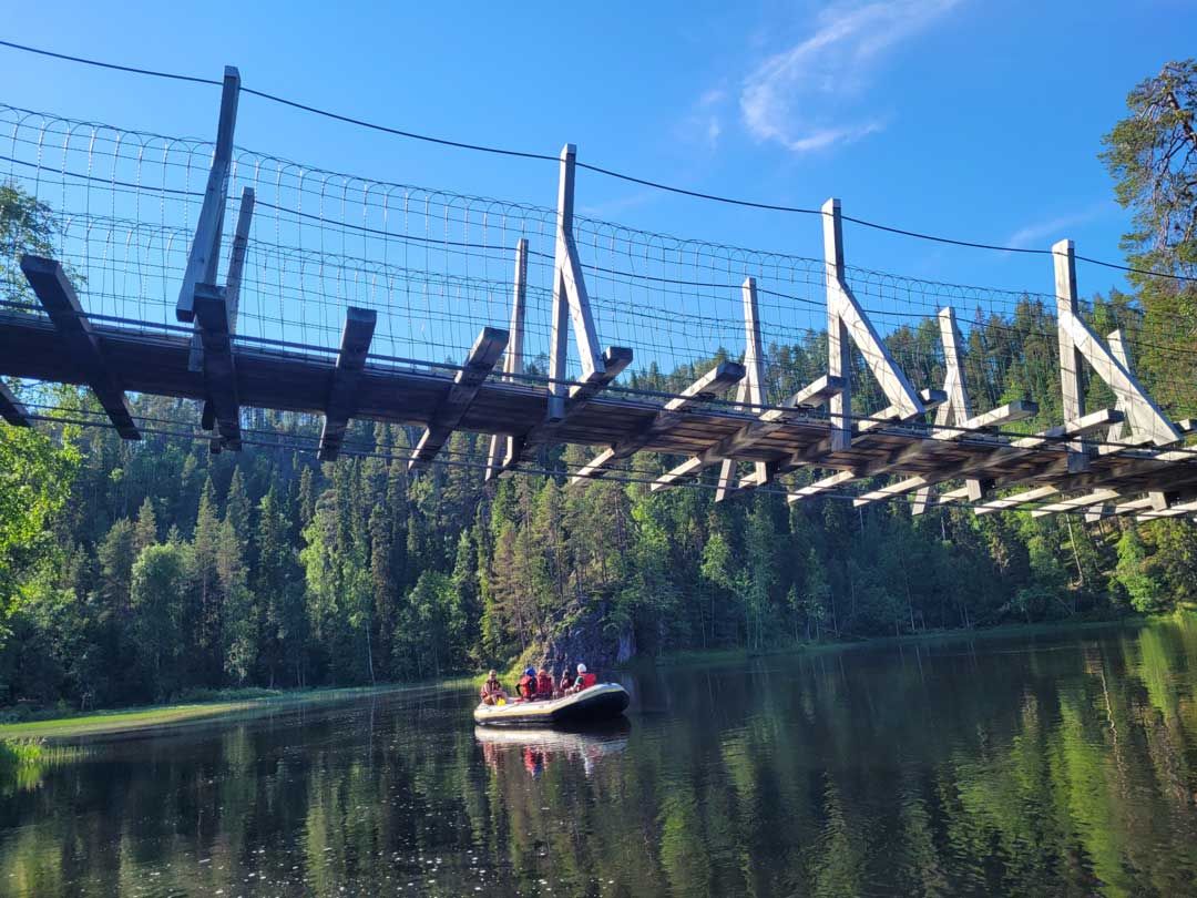 At Vattumutka we will go ashore, leave the raft and hike some 500 metres to the car. Please note that there is a deep uphill on the way.