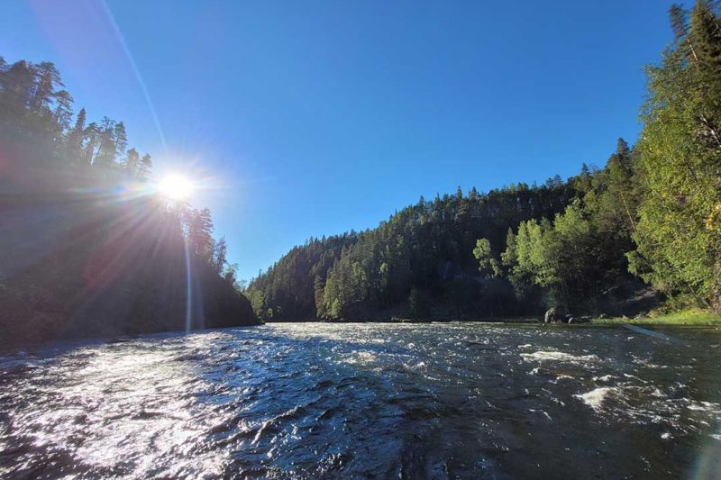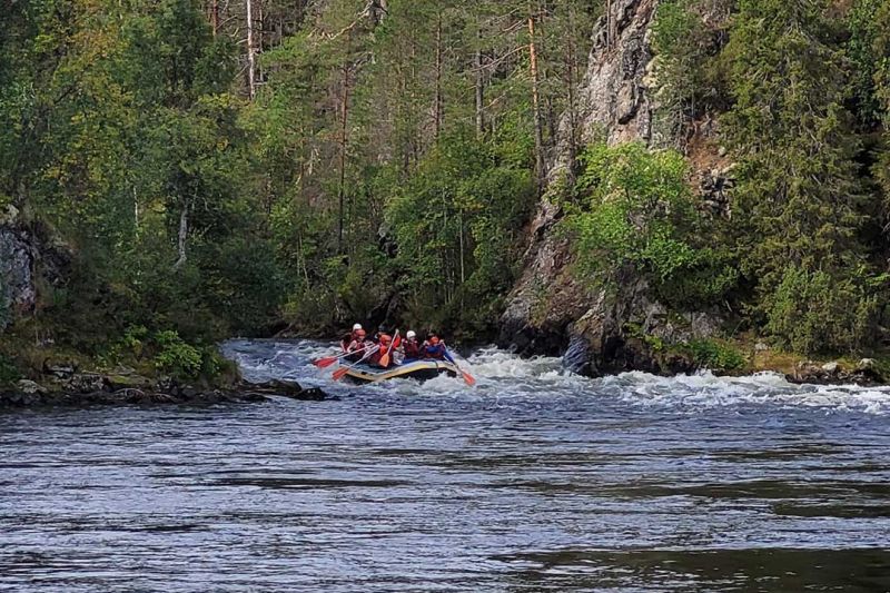 Jyrävältä Suuri koskenlaskuseikkailumme jatkuu kohti Harrisuvantoa. Laskemme useita pitkiä I-II luokan koskia rennolla meiningillä leppoisissa tunnelmissa. Täällä alaosassa Kitkajoki kiemurtelee jyrkkien kallioseinämien välissä ja upeat Oulangan kansallispuiston maisemat rentouttavat ja rauhoittavat mieltä. Välillä annamme Kitkajoen virran viedä lauttaa ja nautimme luonnon rauhasta.